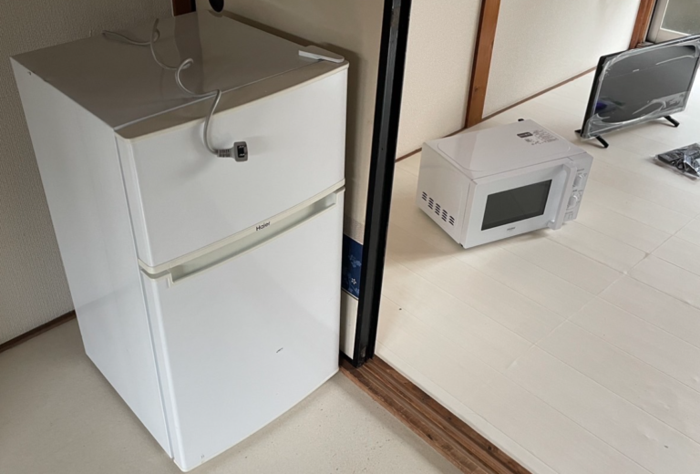 ガスコンロ、エアコン、冷蔵庫、電子レンジ、テレビ、洗濯機、照明器具付いてます!!(サービス品)